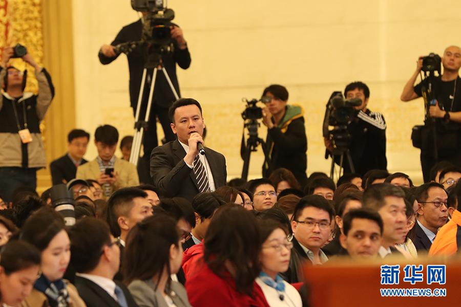 3月15日上午十三届全国人大二次会议闭幕后,国务院总理李克强在人民大会堂三楼金色大厅会见采访十三届全国人大二次会议的中外记者并回答记者提出的问题。图为中国新闻社、中国新闻网记者提问。新华网/中国政府网 陈杰 摄