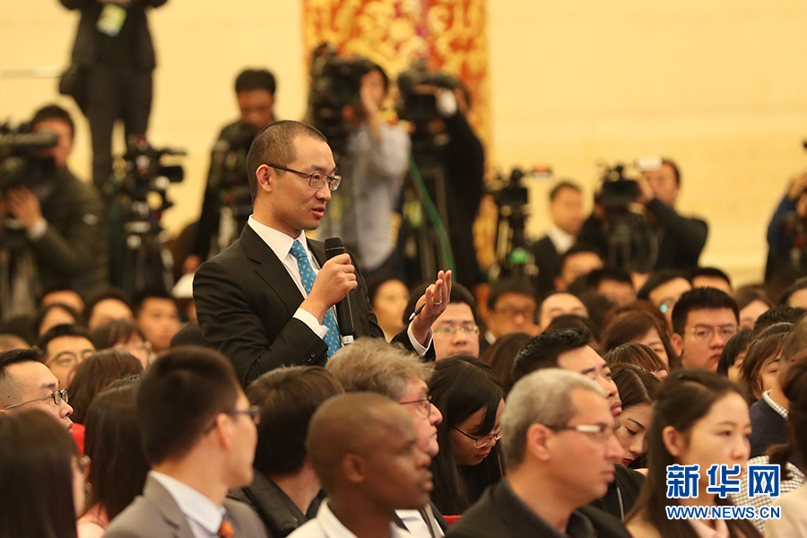 3月15日上午十三届全国人大二次会议闭幕后,国务院总理李克强在人民大会堂三楼金色大厅会见采访十三届全国人大二次会议的中外记者并回答记者提出的问题。图为彭博社记者提问。新华网/中国政府网 陈杰 摄