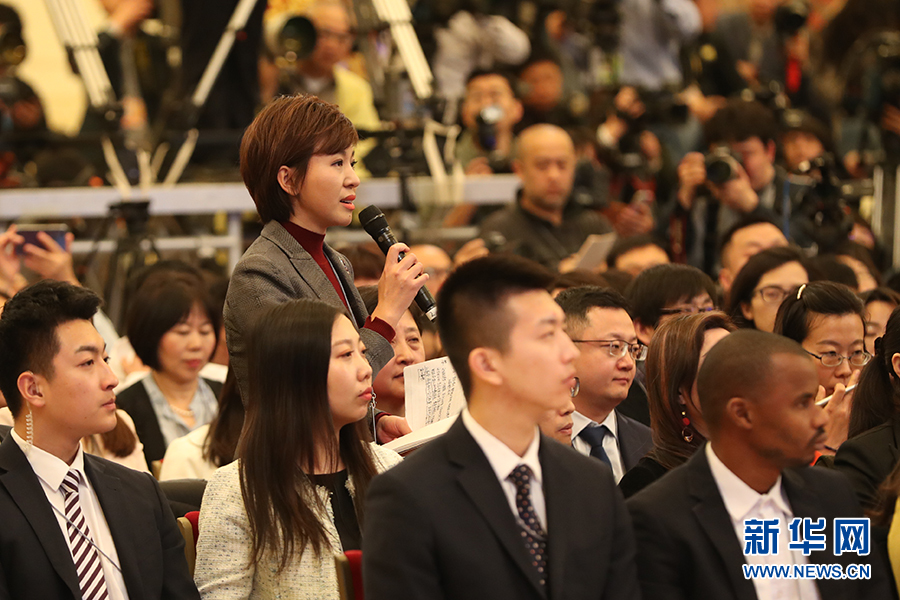 3月15日上午十三届全国人大二次会议闭幕后,国务院总理李克强在人民大会堂三楼金色大厅会见采访十三届全国人大二次会议的中外记者并回答记者提出的问题。图为中国广播电视总台记者提问。新华网/中国政府网 陈杰 摄
