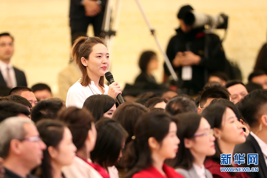 3月15日上午十三届全国人大二次会议闭幕后,国务院总理李克强在人民大会堂三楼金色大厅会见采访十三届全国人大二次会议的中外记者并回答记者提出的问题。图为澎湃新闻记者提问。新华网/中国政府网 陈杰 摄
