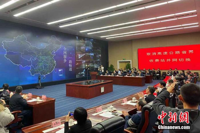 交通运输部举行的“取消高速公路省界收费站工程并网切换仪式”现场。 程春雨 摄