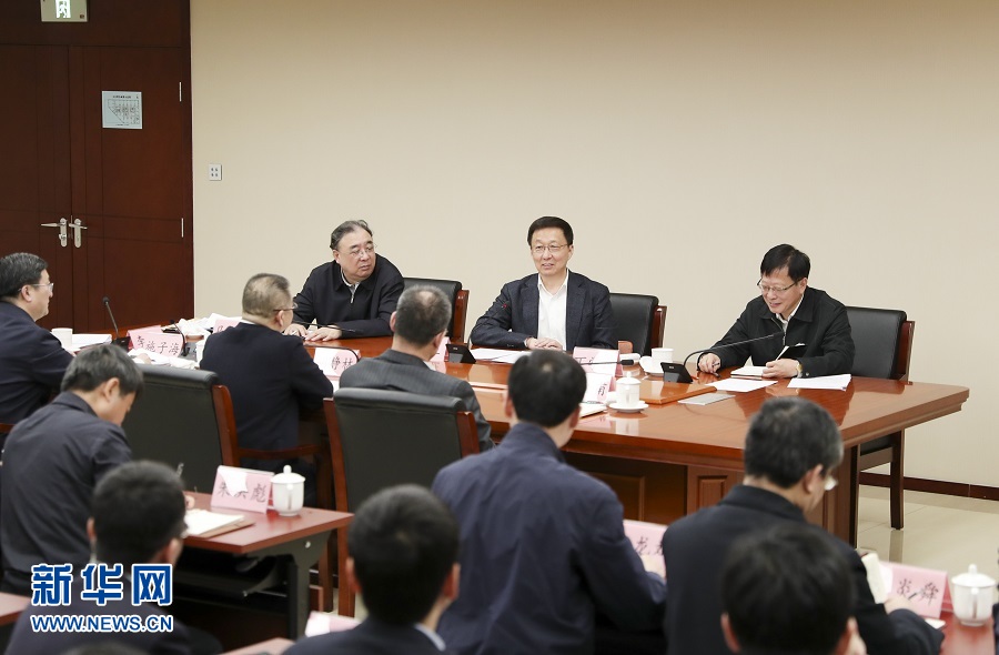 1月9日,中共中央政治局常委、国务院副总理韩正在国家医疗保障局召开座谈会。 新华社记者 丁海涛 摄