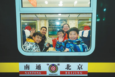 1月10日凌晨零时29分,今年春运第一趟增开普速列车K4051次从北京站发车。贺 勇摄