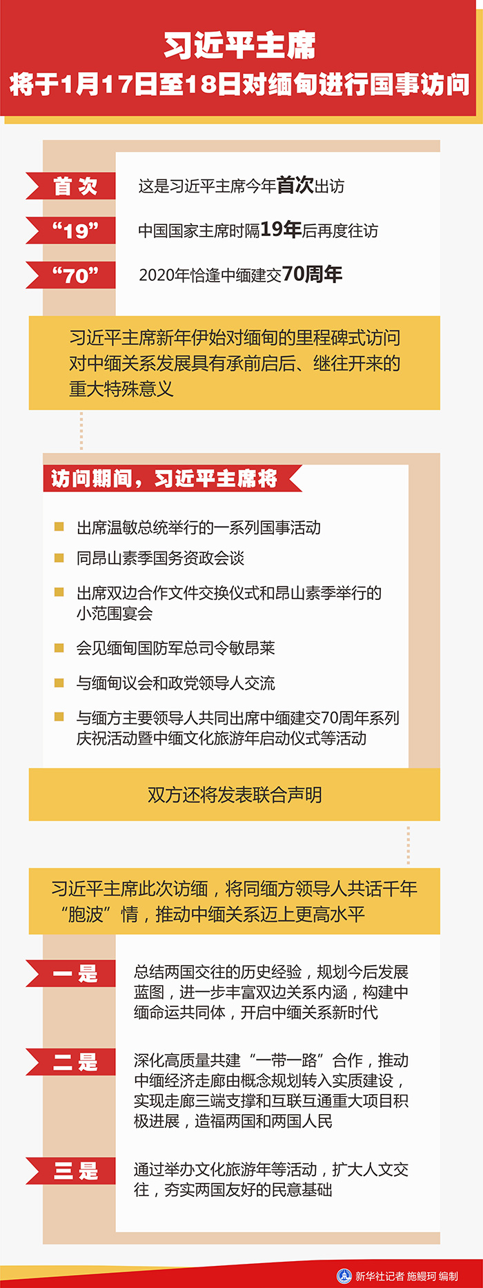 罗照辉表示,应温敏总统邀请,习近平主席将于1月17日至18日对缅甸进行国事访问。这是习近平主席今年首次出访,是中国国家主席时隔19年后再度往访,又恰逢中缅建交70周年,对中缅关系发展具有承前启后、继往开来的重大特殊意义。缅甸是中国友好邻邦。当前,两国政治上高度互信,经济上深度合作,国际地区问题上密切配合,“胞波”情谊历久弥新,民间往来高位运行。建交70年来,中缅关系在互尊、互信、互助的基础上不断发展,树立了大小国家间和睦相处、合作共赢的典范。中方坚持不干涉缅内政,坚定支持缅甸维护国家尊严和合法权益。在缅甸国内和平和解问题上,中方劝和促谈,发挥建设性作用。缅方在涉及台湾、西藏、新疆问题上一直坚定支持中方。缅甸积极响应和参与“一带一路”合作倡议。中缅经济走廊及大项目合作带动了缅方沿线就业和经济发展,极大提升了当地人民生活水平。中缅坚持践行和平共处五项原则,坚持国际关系基本准则,支持多边主义、维护自由贸易,共同为推动建立公正合理的新型国际关系作出贡献。双方在联合国、东亚合作等场合相互支持,在建立中国-东盟自贸区,区域全面经济伙伴关系、“南海行为准则”磋商等方面密切协调配合。