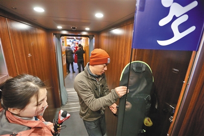 昨日上午,记者在所乘坐的京张高铁列车上看到,有不少乘客都是身着滑雪服、背着滑雪板的冬季运动爱好者。随着京张高铁、崇礼铁路的开通,乘坐高铁前往张家口崇礼成为了北京市民的滑雪新选择,同时,也带动了北京市民体验冰雪运动的热情。