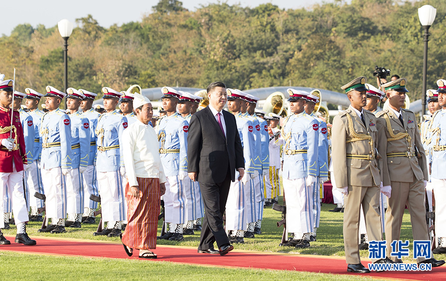 新华社内比都1月17日电(记者蒋国鹏)当地时间1月17日下午,国家主席习近平在内比都总统府出席缅甸总统温敏举行的隆重欢迎仪式。