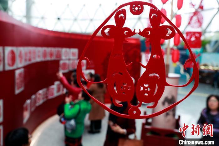 资料图:展览上鼠年吉祥剪纸夺人眼球。 汤彦俊 摄