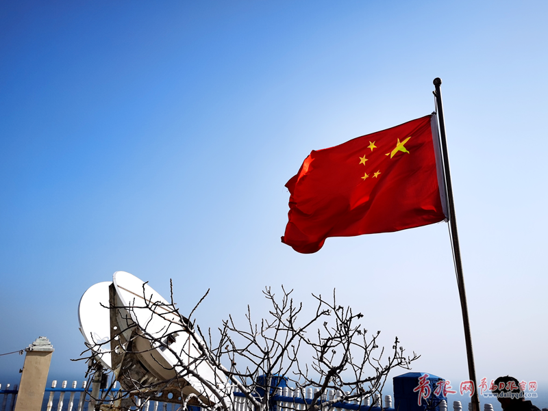 登上山顶监测站的路由凿在山壁上的300多个陡峭台阶组成,呈“之”字形,所有物资均需要从码头一点点靠人背上去。终于来到监测站,不大的小院里伫立着一座二层小楼,五星红旗迎风飘扬。已经陪伴监测员们13年的小狗聪聪步履蹒跚地朝大家迎了过来,角落的10余只鸡悠然地迈着步伐,前几年由陆地上背来的土建成的菜园暖棚里绿油油的,解决了值守后期无蔬菜可吃的问题。
