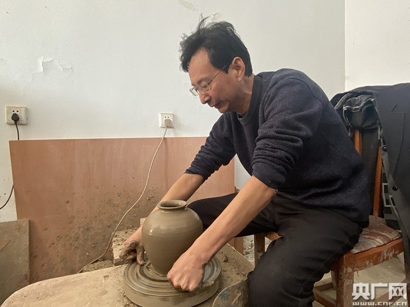 陶艺大师韩克胜(记者 褚夫晴 摄)