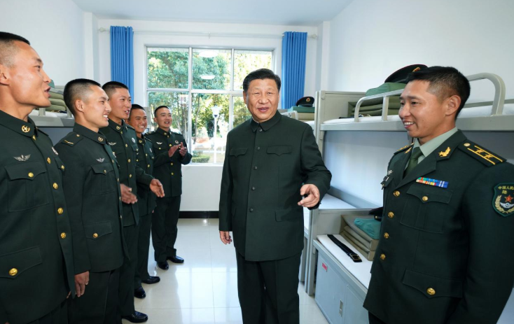 习近平十分牵挂我国边防一线的守边官兵。19日下午6时许,他来到驻守在我国西南边陲的某边防营视察,问住宿,看营卫生所,进食堂……了解战士们的工作和生活情况。