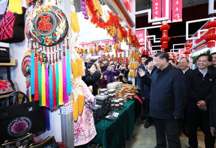 腊月廿六(20日下午),离除夕仅四天,习近平来到第十四届中国昆明新春购物博览会举办地——昆明国际会展中心,了解年货市场供应及国内外商品展销情况,这里被当地人称作“关上年货节”。