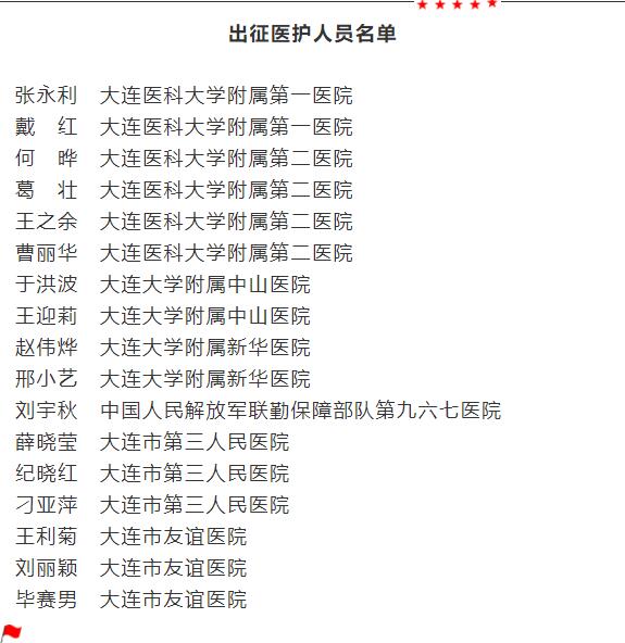 记者从大连市卫生健康委获悉,我市确定了17名医护人员参与到辽宁第一批援助湖北应对新型冠状病毒感染的肺炎疫情医疗队中,今日早上将出征驰援。
