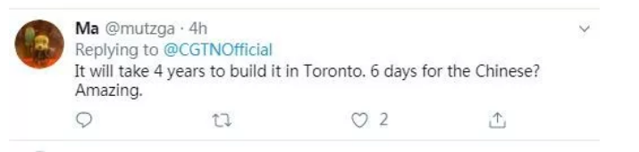 “这在多伦多至少得花4年吧,在中国只需要6天?难以置信!”