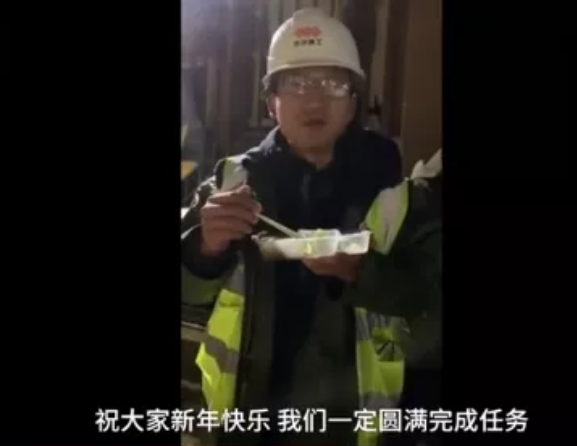 昨日除夕,上百台机械在施工现场同时开挖,工人们连晚饭也只是站在马路边上草草解决,又继续投入战斗。