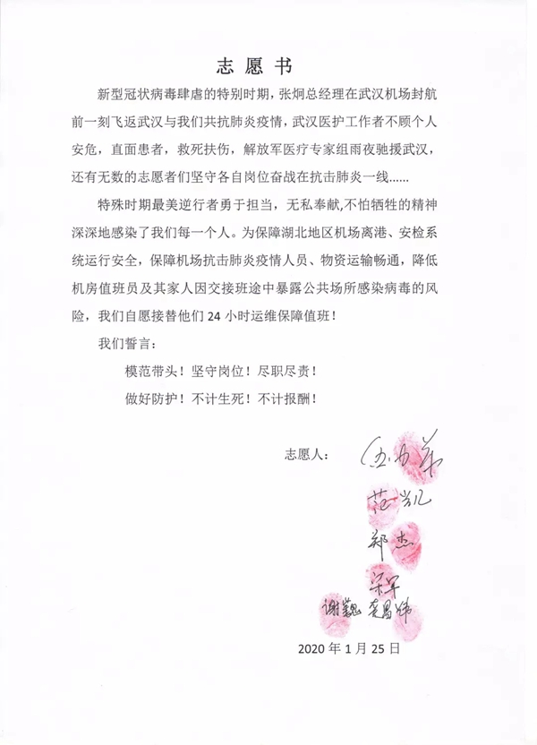号召发出后,党员干部积极响应,金立军、范凯、郑杰、梁军、谢巍、龚昌炜6名技术骨干毅然在志愿书上签下了自已的名字,并向组织作出庄严承诺“模范带头,坚守岗位;尽职尽责,做好防护;不计生死,不计报酬”。