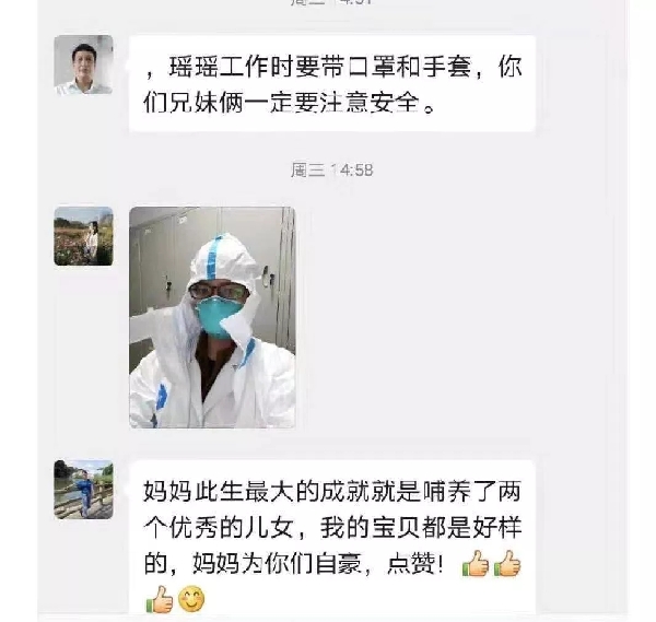“我爸妈其实是挺担心我们的,他们每天在家也都在关注肺炎的相关新闻,知道危险性,但从来没有一句阻拦的话。我爸是一名老党员了,他经常对我和妹妹说,能用所学帮到社会是一件光荣的事情。”胡萌说。