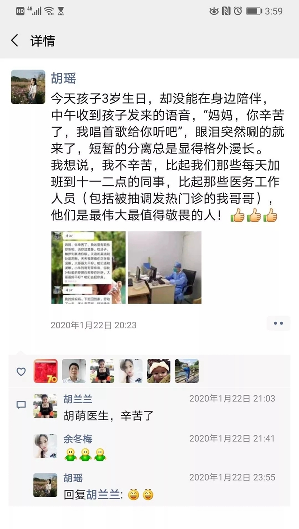 而此时,胡瑶和哥哥一样,也在与新型冠状肺炎抗击奋战的第一线。