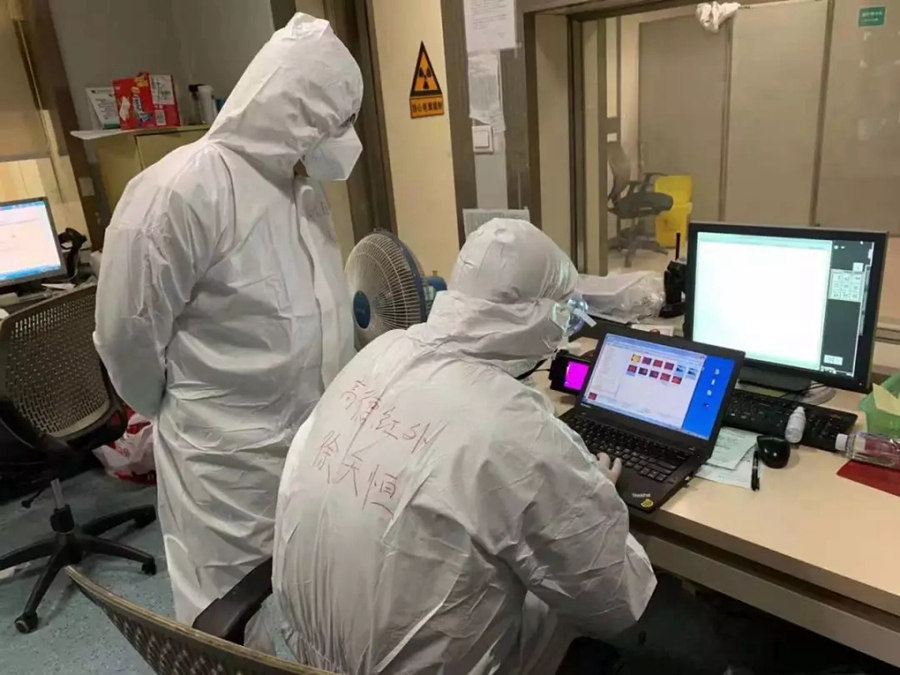 图为高德红外员工奋战在医院第一线。