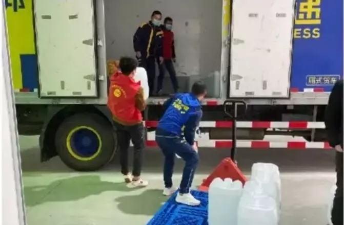 1月29日,德邦快递浙江事业部收到消息,需要运送5吨消毒液紧急送往湖北,快递小哥自愿到场数十人,迅速完成装卸任务,驰援武汉。1月29日,合肥市政府交付到武汉市政府的一批急缺物资90吨,德邦快递合肥团队迅速整装出发前往武汉。