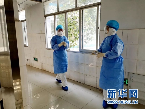 仔细穿上隔离防护服、在背上写上自己的名字,董黎和队友们迅速进入工作状态,为患者打针、做雾化……“其实工作量没有平时大,但因为负荷不同,感觉有点缺氧。”因全身防护严密,董黎刚开始有些不适应,但又不能随意去触碰防护器具的位置,4个小时的工作下来,已是大汗淋漓。