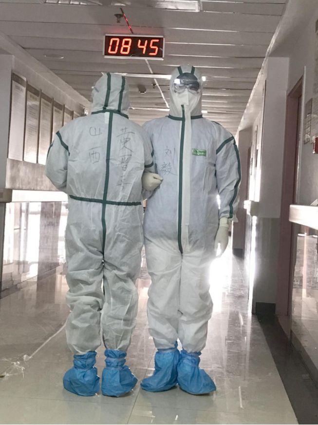 在做好自我防护以后,我们跟随当地老师进入隔离病房开始护理工作,在护理过程中,有好几位患者对我们表示真诚的感谢,他们说:你们就是来自山西的医务人员,对吗?我们从电视上看到你们了,真心的感谢你们,谢谢你们!他们每一句的感谢都深深地印在了我们的心里。