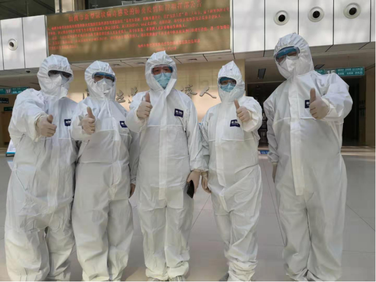 我们小组共计四个人,我是组长,4小时的工作时间其实并不长,但在全身防护以后,护目镜、口罩将额头和鼻梁勒出了深深的一道又一道沟,随着工作时间的延长明显感觉到额头和鼻梁的疼痛感,自己呼吸也开始急促,浑身有虚脱的感觉,只有工作起来才会忘记这些。