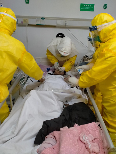 2月1日下午,在武汉市金银潭医院重症病区,一场紧急的生命救援战正在上演:驰援武汉的东南大学附属中大医院重症医学科专家潘纯,在病情紧急、来不及充分防护的情况下,挺身而出,为危重的新型冠状病毒感染的肺炎病人施行紧急气管插管,并与战友们密切配合,借助ECMO(人工心肺)技术,保住了患者生命。