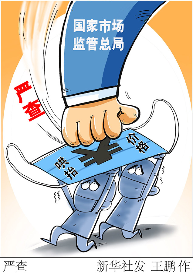 新华社北京2月8日电(记者刘开雄、屈婷)8日,在国务院联防联控机制新闻发布会上,国家市场监管总局有关部门负责人表示,各级市场监管部门依法从严从重从快打击少数经营者串通涨价、哄抬价格、价格欺诈等违法行为,坚决维护防疫用品市场价格秩序。