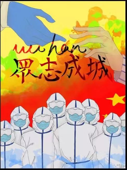 来自家人的牵挂总是最暖心,世纪坛医院领队丁新民收到了女儿自己画的一幅画,画的正中央写着众志成城: