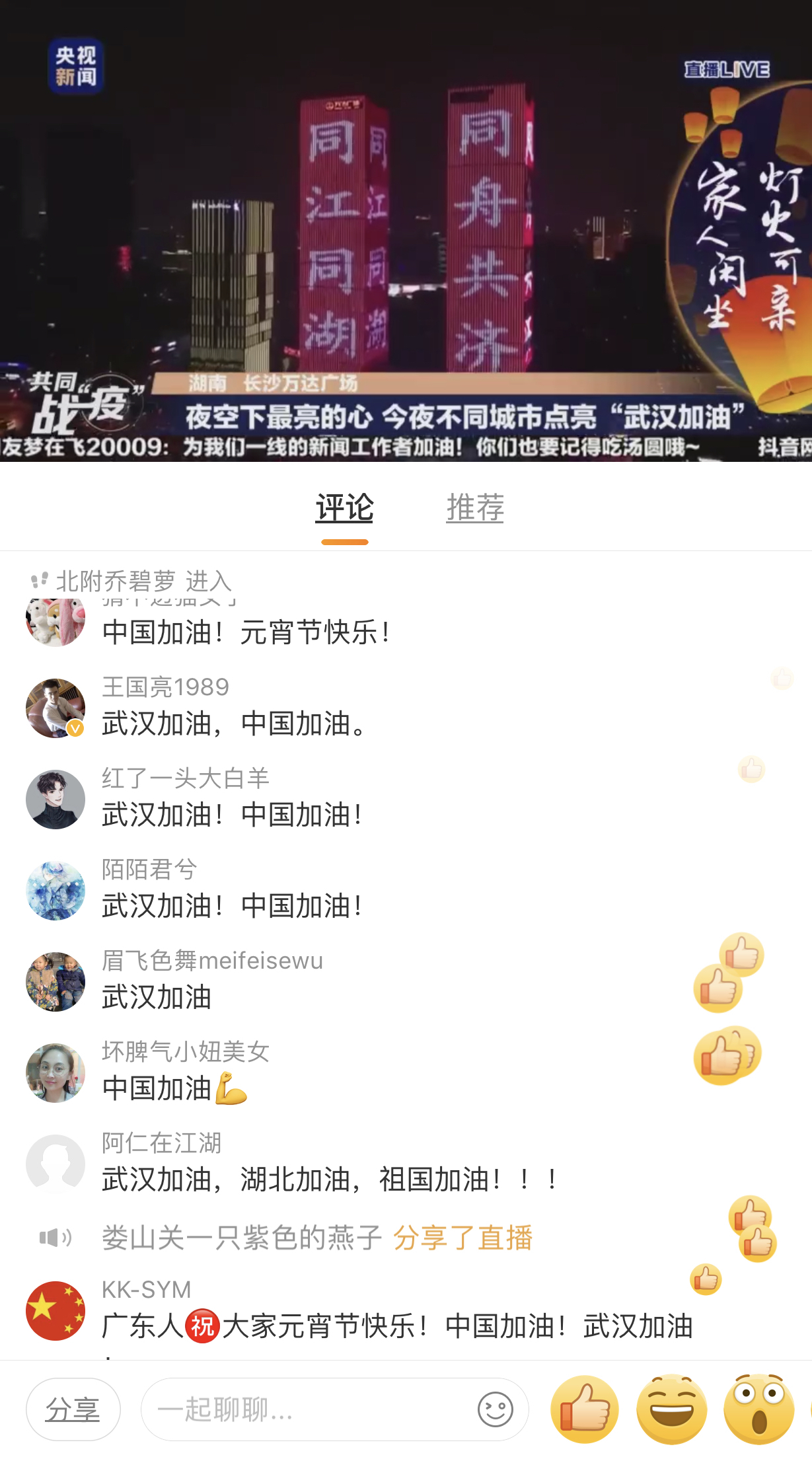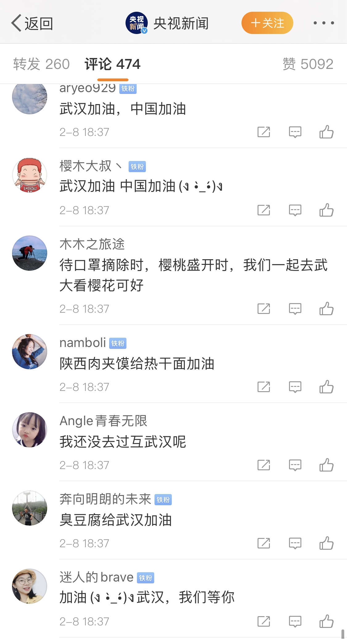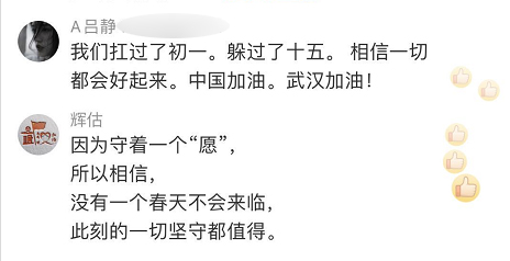 网友A吕静:我们扛过了初一,躲过了十五,相信一切都会好起来。中国加油,武汉加油!