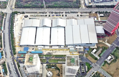 2月8日,从空中俯瞰武汉客厅方舱医院全景。新华社记者 李贺摄