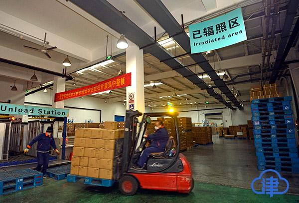 下午4点半,记者来到新区的另一家复工企业——天津金鹏源辐照技术有限公司。在辐照车间调度室,生产部两位值班主任钱宁勇和赵志强正在交班,监控系统屏幕上数据不停跳动,实时显示每一拖箱货物辐照杀菌的进程状态。