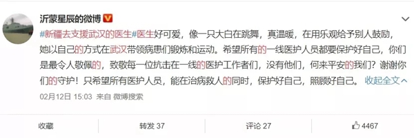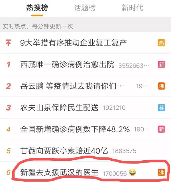 昨天,新疆去支援武汉的医生话题猝不及防地上了微博热搜。