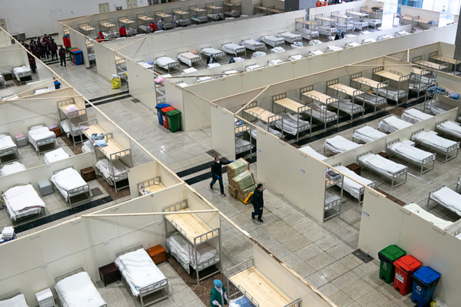有日夜奋战的农民工兄弟。在数天的时间内,全市13个大型综合场馆改建完成,搭建拥有万余床位的“方舱医院”,力求通过动用最小的社会资源,最大效果地将轻症确诊病人收入,阻断传染源,造就“生命之舟”。