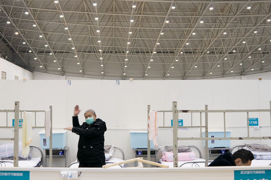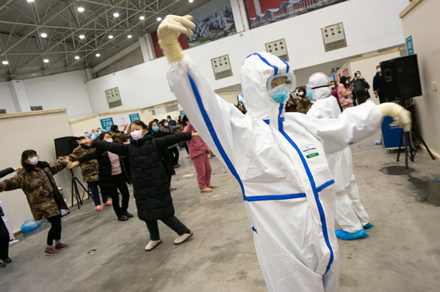 在武汉客厅方舱医院,就算隔着厚厚雾气的防护镜,我依然被眼前景象深深打动:病人相互加油鼓劲,打拳的、拼魔方的、跳广场舞的…他们有人呼吸艰难,喘着粗气,却也努力伸展,露出生命本来的顽强模样。