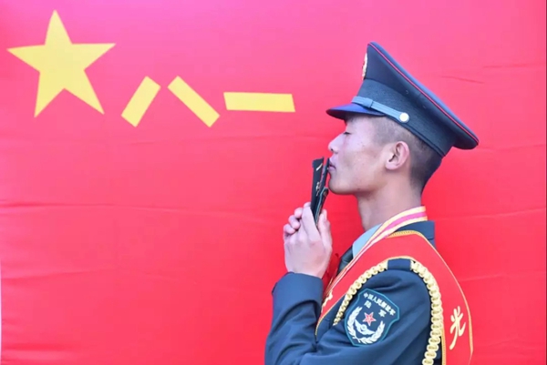 犹记得2019年新年伊始,我所在单位举行了隆重的开训动员仪式,那是我入伍以来第一次参加这样的仪式。那是一个下雪天,白雪皑皑的训练场上,火红的军旗格外耀眼。铁甲列阵发出阵阵轰鸣,队伍行进脚步铿锵有力,雪花落在我的肩头缓缓融化……虽然寒冷,但站在军旗下,我一动不动。时隔一年,每当我想起曾在军旗下立下的誓言,就会在心里不断催生着当兵打仗、为国而战的不竭动力。(王海山)