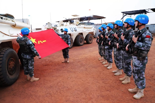 这张照片拍摄于2018年建军节。那一年,我作为中国第六批赴马里维和工兵分队的一员,第一次走出国门,在异国他乡面对军旗庄严宣誓。在火红的军旗下,我和战友们整齐列队,喊出铮铮誓言,同行的记者用相机记录下了这一瞬间。回国后,我一直珍藏着这张照片。(刘晓帅)