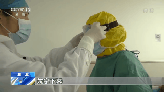 武汉市汉口医院发热门诊科护士长 赵华:因为她们进去是采咽试子的,危险系数很大,所以她们比我们防护还要高级一些。口罩都带了三层、防护口罩和防护面屏。