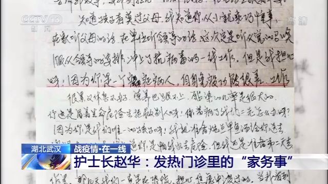 知道赵华在抗击疫情前线,母亲在信中说:我担心呀!因为你是一个癌症病人,自身免疫功能很差,工作很累又休息不好,营养也跟不上,感染的几率是很大的,你这是冒着生命危险去抢救别人呀。