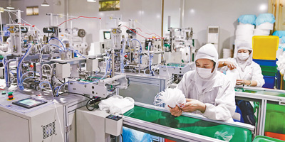 近日,在福建漳州市一家医疗器械公司生产车间内,员工正在逐一清点检查成品口罩。颜 珂 肖和勇摄影报道