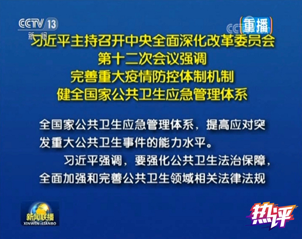 昨天的新闻稿,打破了近年来的惯例——在导语之后、介绍会议审议通过的若干文件之前,出现了习近平总书记的6段重要讲话内容,紧紧围绕“完善重大疫情防控体制机制,健全国家公共卫生应急管理体系”,提了五个方面的要求。这体现了此事的重要与紧迫。习近平总书记针对这次疫情暴露出来的短板和不足,立足当前、放眼长远,围绕这一重大改革主题,作了一次全面动员、全面部署。