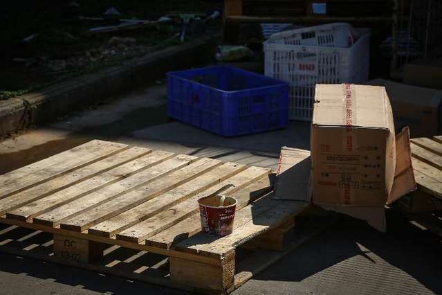 2月16日,湖北省武汉市,美菜武汉六仓外的泡面盒。中青报·中青网记者 赵迪摄