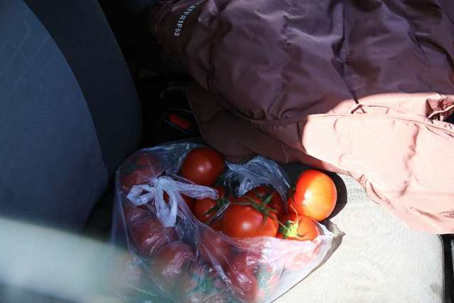 2月16日,湖北省武汉市,许可副驾旁的番茄。中青报·中青网记者 赵迪摄
