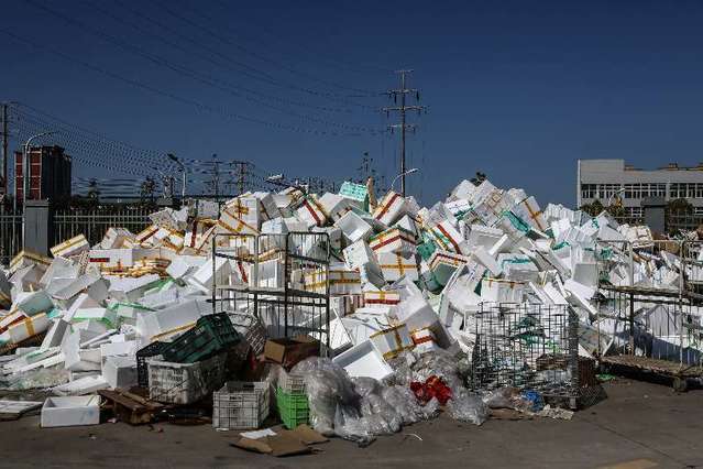 2月16日,湖北省武汉市,美菜武汉六仓外堆放的包装盒。中青报·中青网记者 赵迪摄