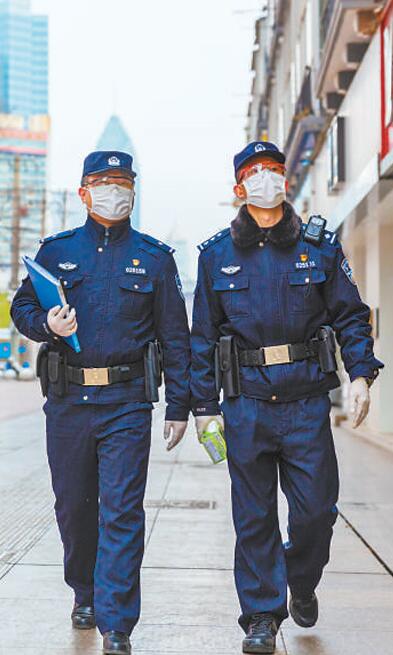 2月1日,武汉市公安局江岸区分局大智街派出所民警在江汉路步行街巡逻。记者 张武军摄