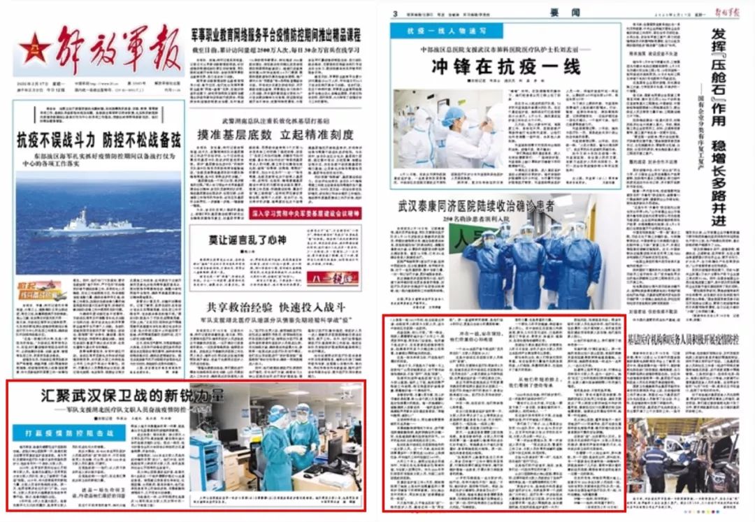 ▲刊于《解放军报》2020年2月17日头版、03版