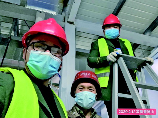 图为2月12日李海军(中)在雷神山医院工地留影。新华社发(受访者李海军供图)