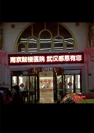 4 辆大巴载着我们驶向酒店,原本繁华的街道冷冷清清,原本拥挤的道路畅通无阻。酒店门口的电子展示屏上滚动着:南京鼓楼医院,武汉感恩有您!顿时心里感到暖暖的。