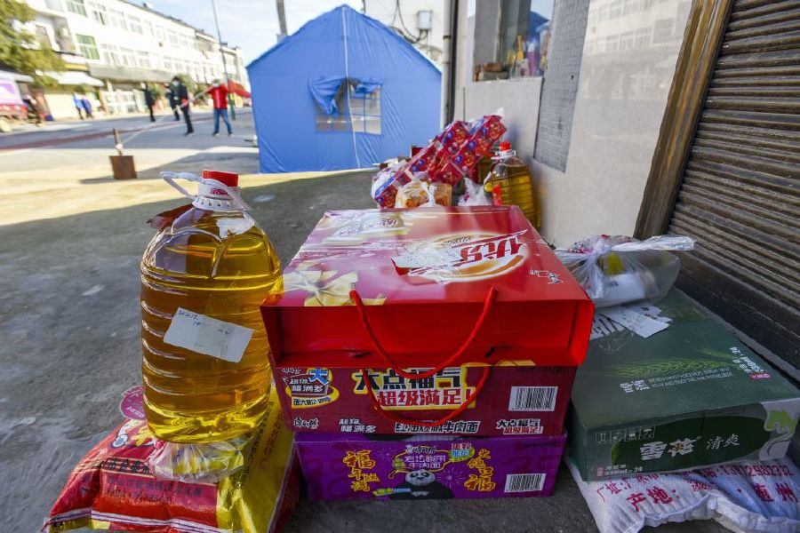 浐川村防疫工作人员为村民代购的生活物资。新华社记者 胡虎虎 摄