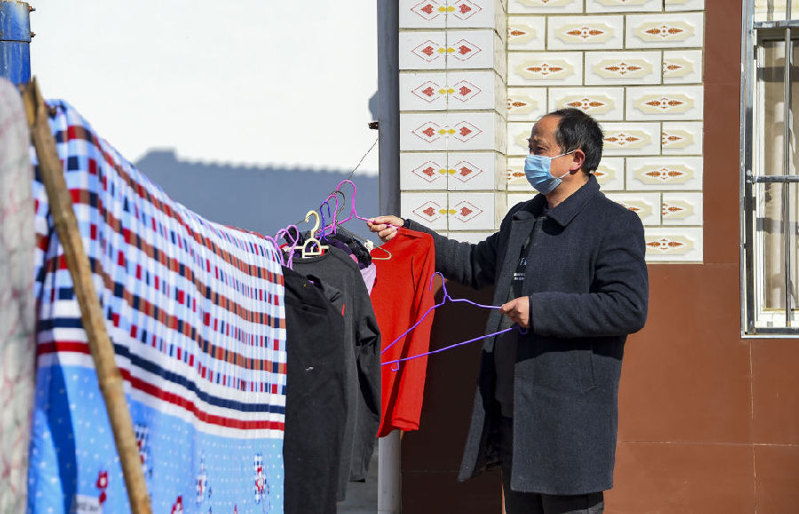 浐川村的村民在家门口晾晒衣服。新华社记者 胡虎虎 摄